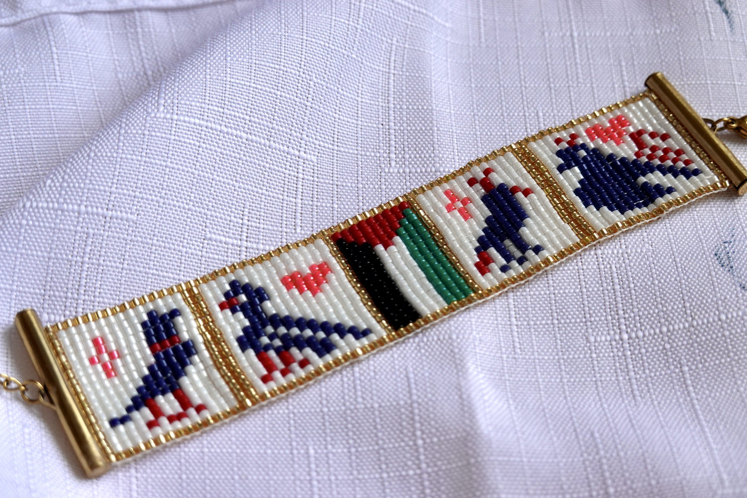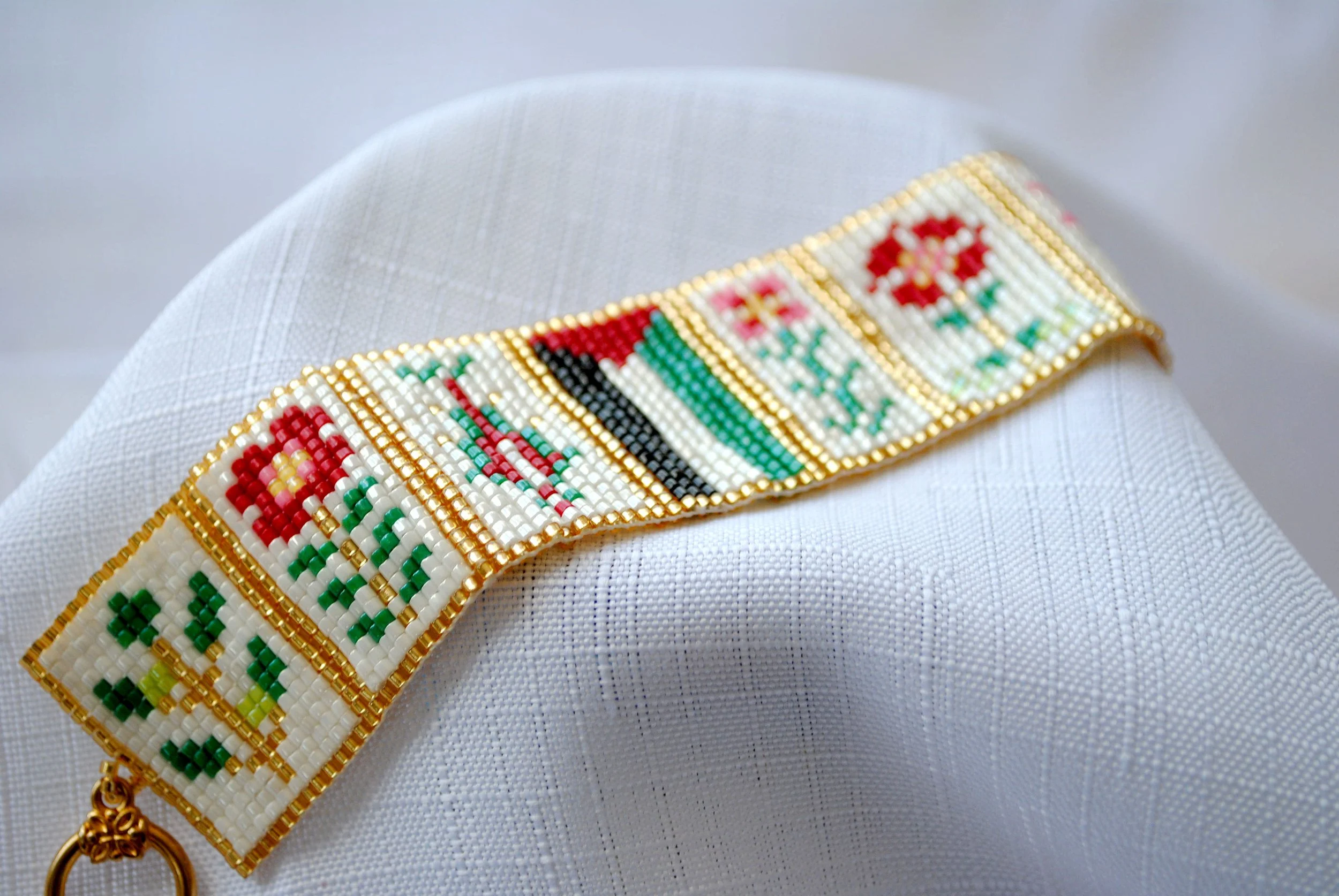 Handwoven Beaded Accessories Warda Earrings $68.00 Cypress Ramallah Bracelet $140.00 Birds, Fountains and Flowers Bracelet $90.00 Sold Out Star of Bethlehem Bracelet $140.00 Birds of Palestine Bracelet $90.00 Warda Earrings $68.00 Star of Bethlehem Bracelet $140.00 Sold Out Gardens of Palestine Bracelet $140.00 Floral Bracelet $90.00 Sold Out Cypress Earrings $68.00 Cypress Earrings $50.00 Sold Out